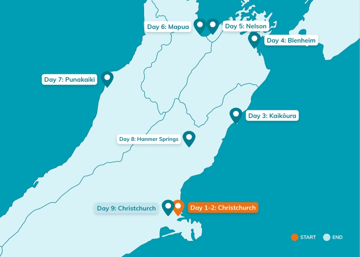 Christchurch is just a 90-minute drive away and if you do have any time to spare before you depart, a stroll around the Botanic Gardens and Arts Centre is a fantastic way to end the holiday.